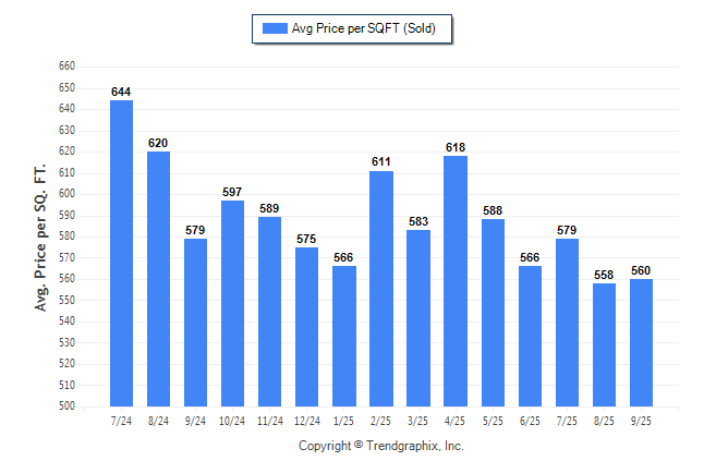 September 2025 Average Sold Price per Square Footage was Neutral**