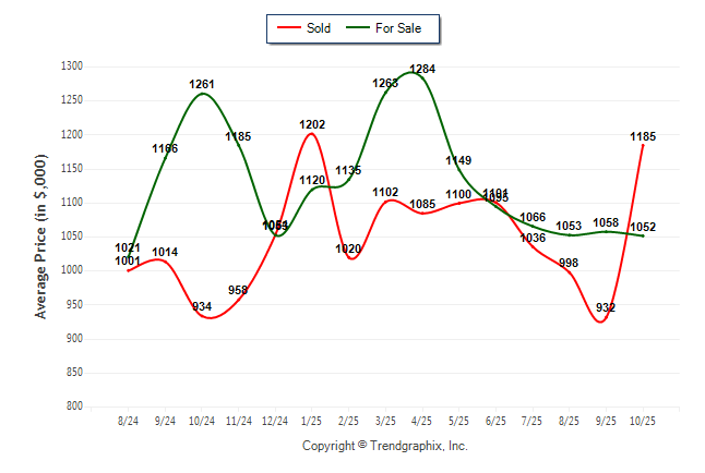 October 2025 Average For Sale Price was Depreciating and Average Sold Price was Neutral**