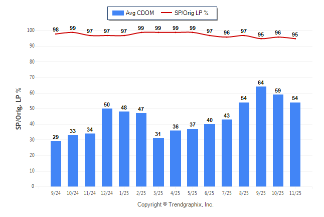 November 2025 Average Continuous Days on Market trend Remains Steady and Sold/Original List Price Ratio was Falling**