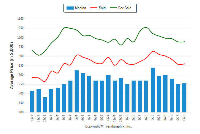 October 2025 Median Price was Neutral, Avg. For Sale Price was Depreciating, and Avg. Sold Price was Neutral**