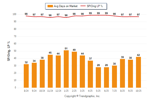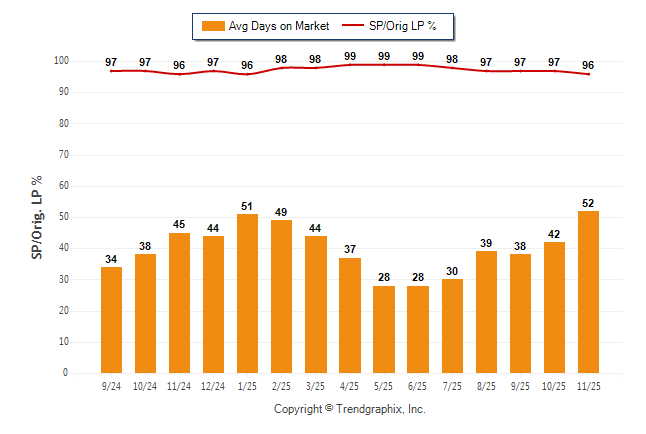 November 2025 Average Days on Market trend was Rising and Sold/Original List Price Ratio was Falling**