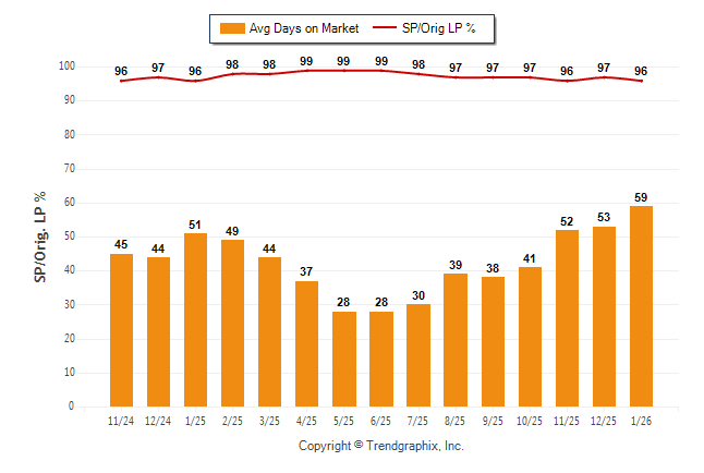 January 2026 Average Days on Market trend was Rising and Sold/Original List Price Ratio was Falling**