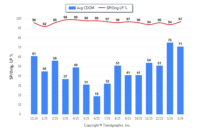 February 2026 Average Continuous Days on Market trend Remains Steady and Sold/Original List Price Ratio Remains Steady**