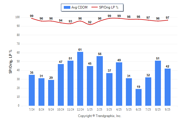 September 2025 Average Continuous Days on Market trend Remains Steady and Sold/Original List Price Ratio Remains Steady**