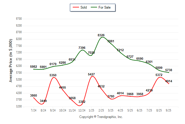 September 2025 Average For Sale Price was Depreciating and Average Sold Price was Neutral**