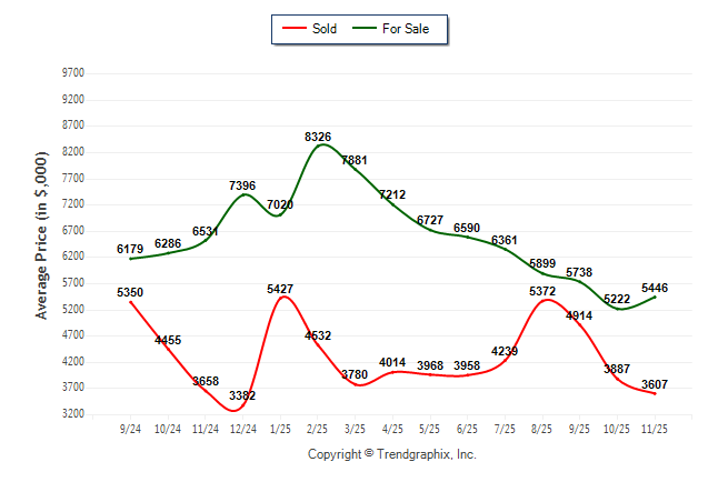 November 2025 Average For Sale Price was Neutral and Average Sold Price was Depreciating**