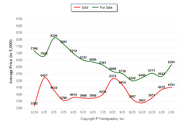 February 2026 Average For Sale Price was Appreciating and Average Sold Price was Appreciating**