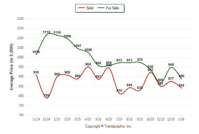 January 2026 Average For Sale Price was Neutral and Average Sold Price was Depreciating**