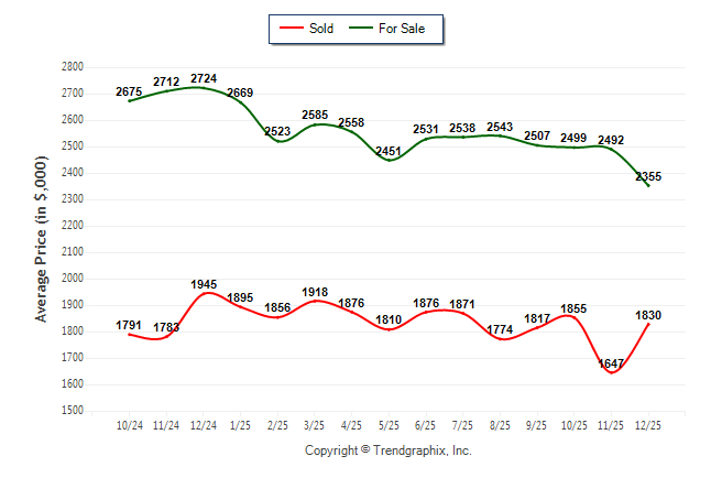 December 2025 Average For Sale Price was Depreciating and Average Sold Price was Neutral**