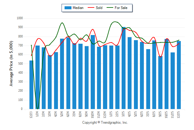 December 2025 Median Price was Neutral, Avg. For Sale Price was Appreciating, and Avg. Sold Price was Neutral**