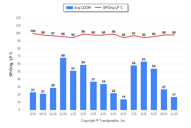 November 2025 Average Continuous Days on Market trend was Falling and Sold/Original List Price Ratio was Rising**