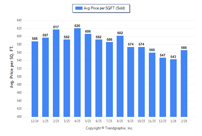 February 2026 Average Sold Price per Square Footage was Neutral**
