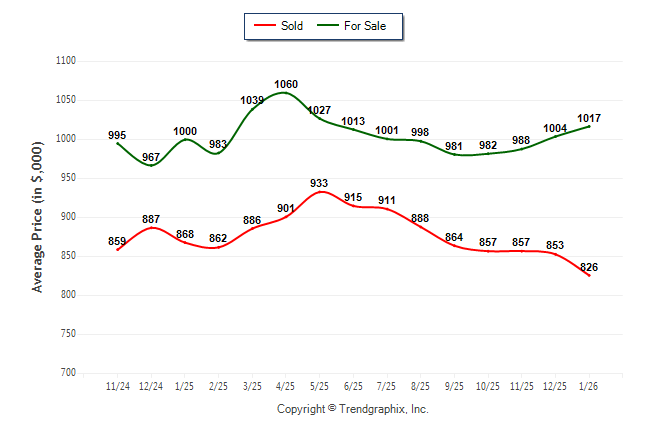January 2026 Average For Sale Price was Appreciating and Average Sold Price was Depreciating**