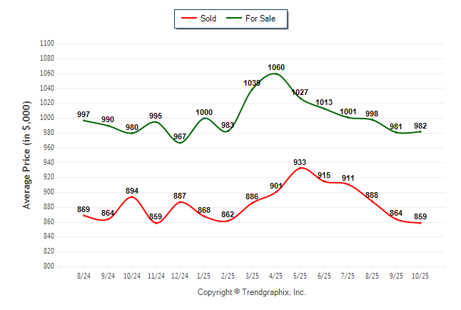 October 2025 Average For Sale Price was Neutral and Average Sold Price was Depreciating**