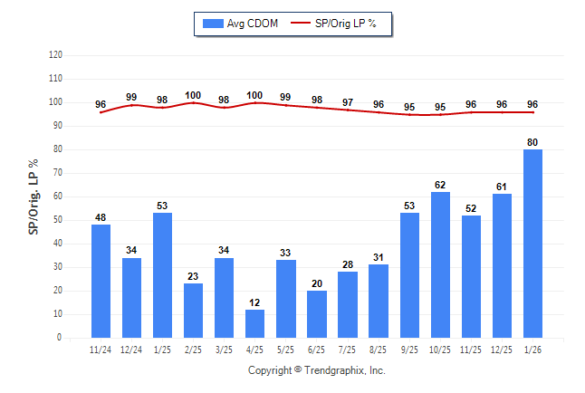 January 2026 Average Continuous Days on Market trend was Rising and Sold/Original List Price Ratio was Rising**