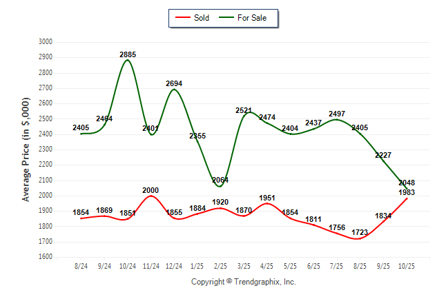 October 2025 Average For Sale Price was Depreciating and Average Sold Price was Appreciating**