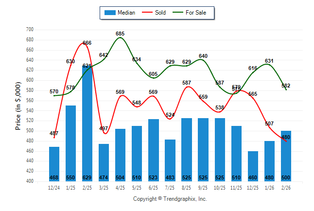 February 2026 Median Price was Neutral, Avg. For Sale Price was Neutral, and Avg. Sold Price was Depreciating**