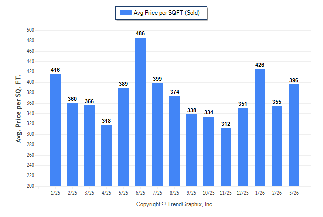 March 2026 Average Sold Price per Square Footage was Neutral**