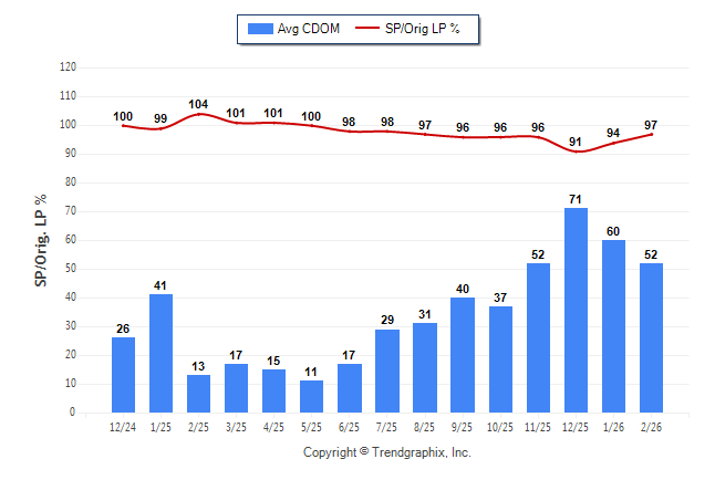 February 2026 Average Continuous Days on Market trend Remains Steady and Sold/Original List Price Ratio Remains Steady**