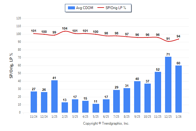 January 2026 Average Continuous Days on Market trend Remains Steady and Sold/Original List Price Ratio Remains Steady**