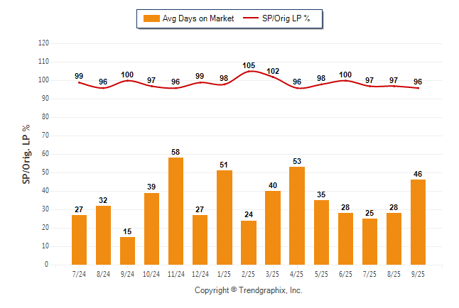 September 2025 Average Days on Market trend Remains Steady and Sold/Original List Price Ratio was Falling**
