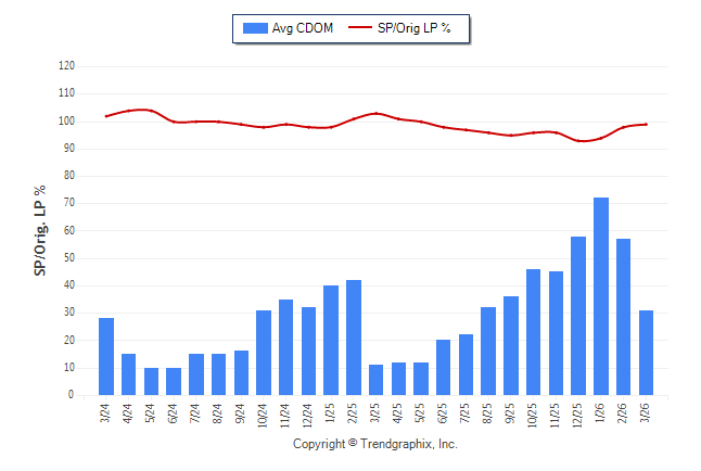 March 2026 Average Continuous Days on Market trend was Falling and Sold/Original List Price Ratio was Rising**