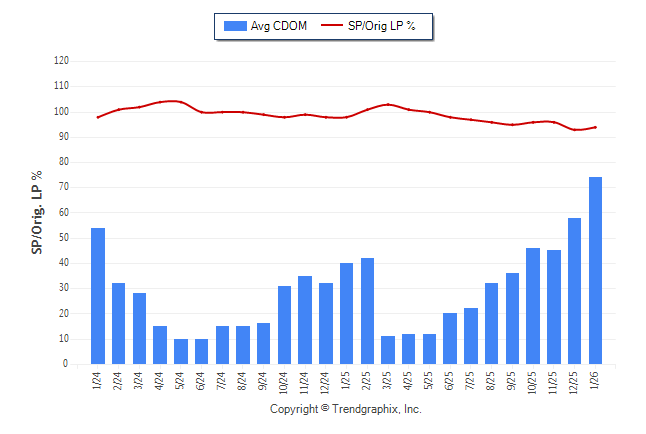 January 2026 Average Continuous Days on Market trend was Rising and Sold/Original List Price Ratio Remains Steady**