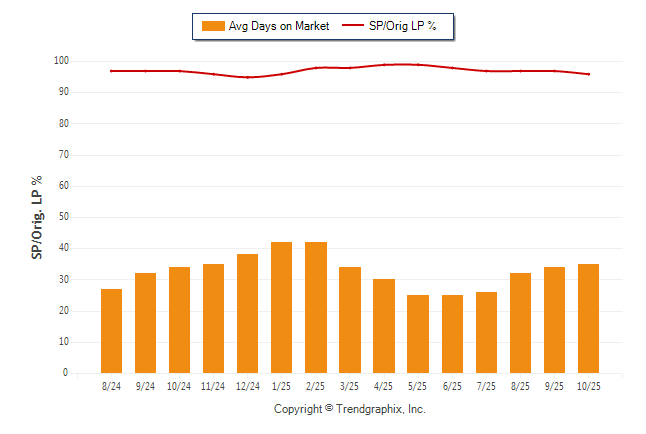 October 2025 Average Days on Market trend was Rising and Sold/Original List Price Ratio was Falling**