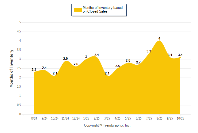 Curnt vs. Same Month 1 Yr Ago: Months of Inventory (Closed Sales)