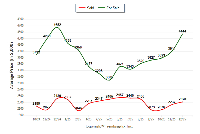 December 2025 Average For Sale Price was Appreciating and Average Sold Price was Neutral**
