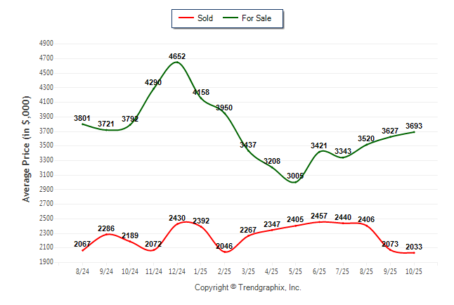October 2025 Average For Sale Price was Appreciating and Average Sold Price was Depreciating**