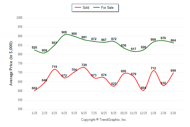 March 2026 Average For Sale Price was Neutral and Average Sold Price was Neutral**
