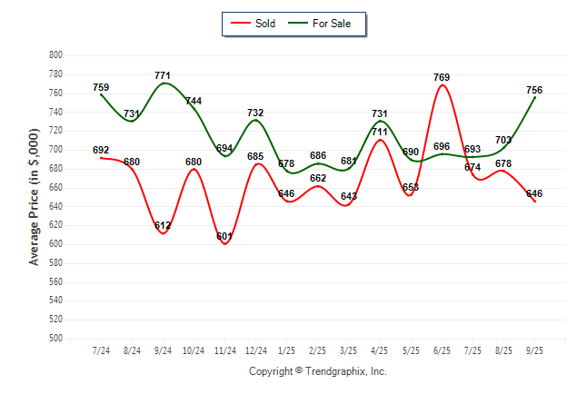 September 2025 Average For Sale Price was Appreciating and Average Sold Price was Depreciating**