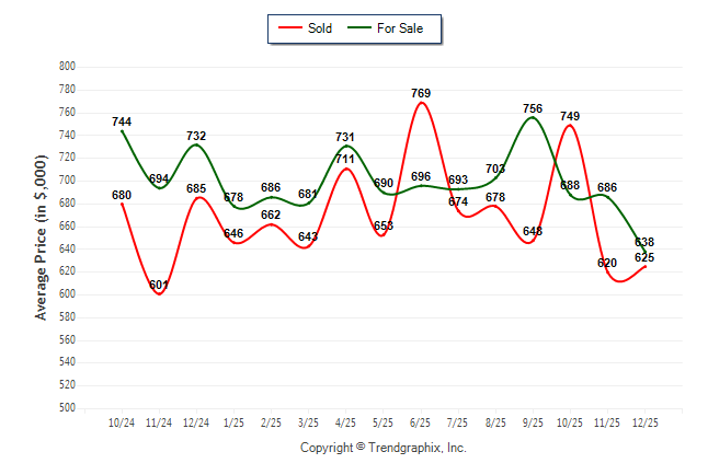 December 2025 Average For Sale Price was Depreciating and Average Sold Price was Neutral**