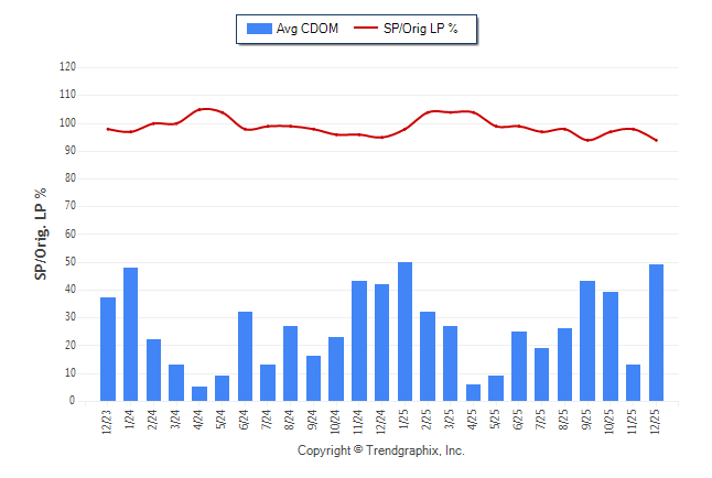 December 2025 Average Continuous Days on Market trend was Rising and Sold/Original List Price Ratio Remains Steady**