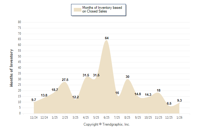Curnt vs. Same Month 1 Yr Ago: Months of Inventory (Closed Sales)