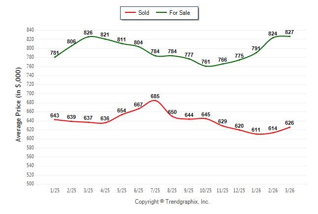 March 2026 Average For Sale Price was Appreciating and Average Sold Price was Neutral**