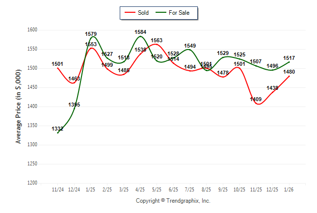 January 2026 Average For Sale Price was Neutral and Average Sold Price was Neutral**