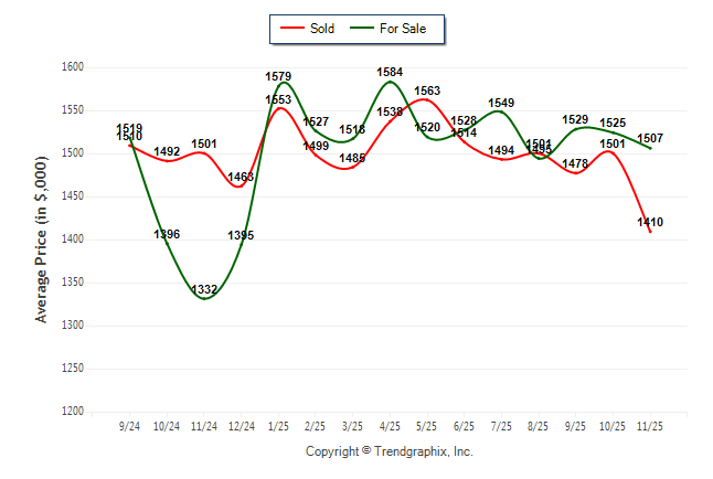 November 2025 Average For Sale Price was Depreciating and Average Sold Price was Depreciating**