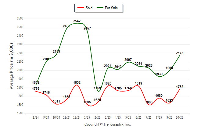 October 2025 Average For Sale Price was Neutral and Average Sold Price was Neutral**
