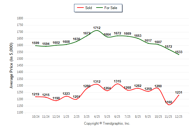 December 2025 Average For Sale Price was Depreciating and Average Sold Price was Neutral**