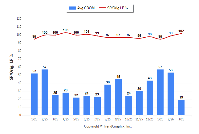 March 2026 Average Continuous Days on Market trend Remains Steady and Sold/Original List Price Ratio was Rising**