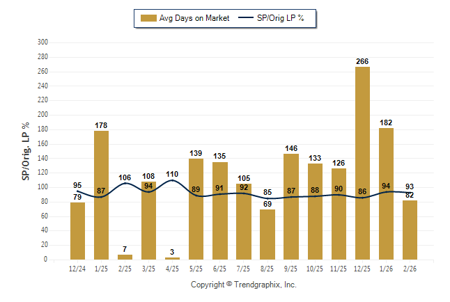 February 2026 Average Days on Market trend Remains Steady and Sold/Original List Price Ratio Remains Steady**