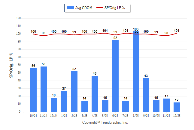 December 2025 Average Continuous Days on Market trend was Falling and Sold/Original List Price Ratio Remains Steady**