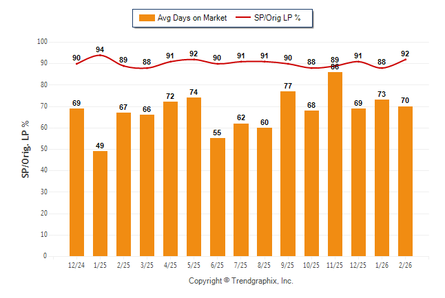 February 2026 Average Days on Market trend Remains Steady and Sold/Original List Price Ratio was Rising**