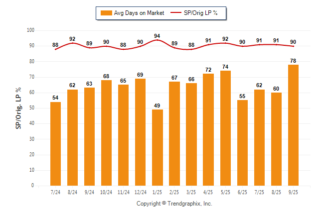 September 2025 Average Days on Market trend Remains Steady and Sold/Original List Price Ratio Remains Steady**