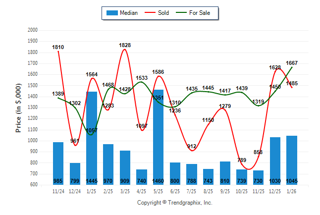 January 2026 Median Price was Appreciating, Avg. For Sale Price was Appreciating, and Avg. Sold Price was Neutral**