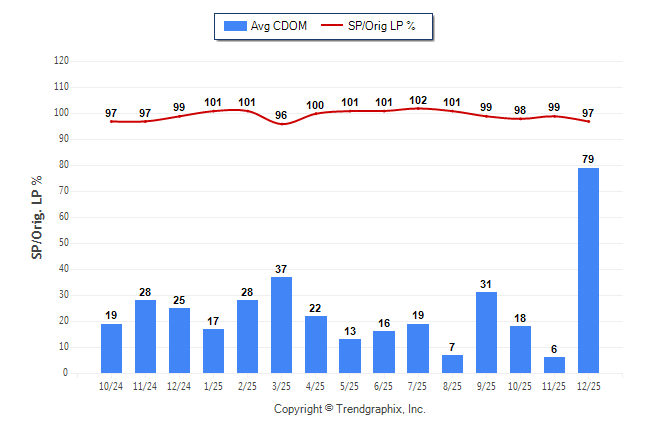 December 2025 Average Continuous Days on Market trend was Rising and Sold/Original List Price Ratio was Falling**