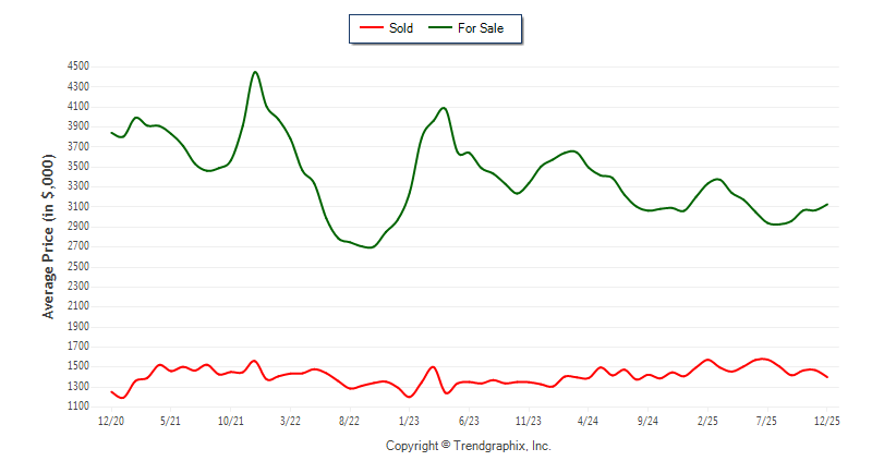 December 2025 Average For Sale Price was Appreciating and Average Sold Price was Depreciating**