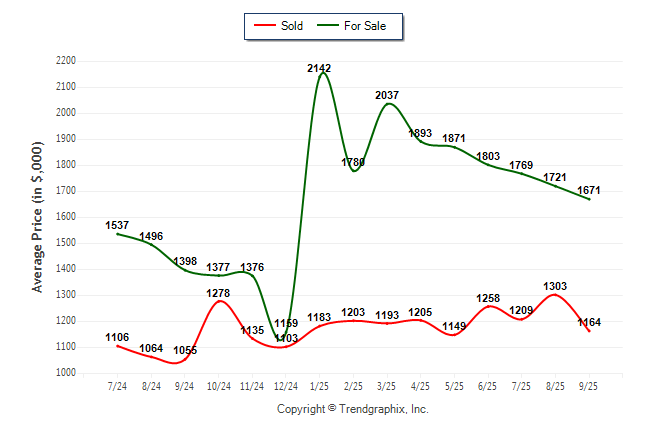 September 2025 Average For Sale Price was Depreciating and Average Sold Price was Neutral**